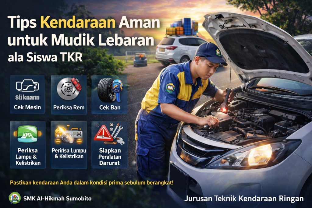 Melalui ilmu yang dipelajari di jurusan Teknik Kendaraan Ringan (TKR), siswa SMK Al-Hikmah Sumobito memiliki pemahaman penting tentang perawatan kendaraan. Berikut beberapa tips yang bisa dilakukan sebelum melakukan perjalanan mudik:
