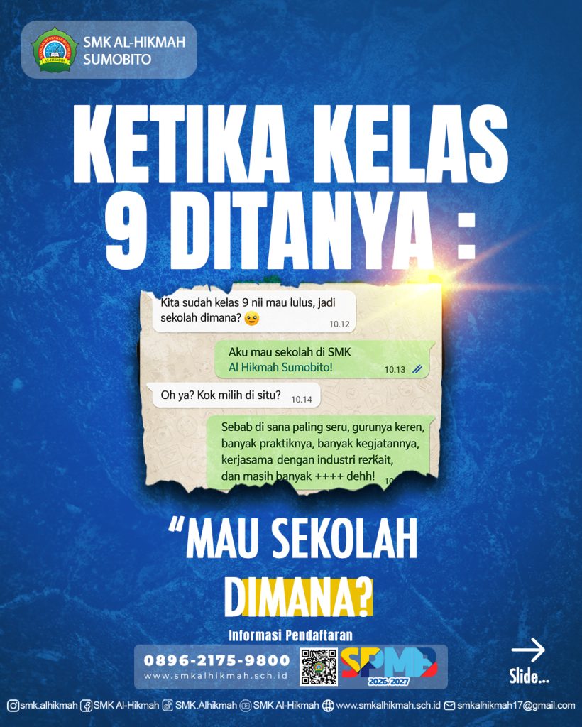 SMK Al Hikmah Sumobito hadir sebagai salah satu pilihan yang mampu menjawab berbagai kebutuhan tersebut. Dengan jurusan unggulan, pembelajaran berbasis praktik, lingkungan religius, serta dukungan tenaga pendidik yang profesional, sekolah ini terus berkomitmen mencetak lulusan yang siap menghadapi masa depan.